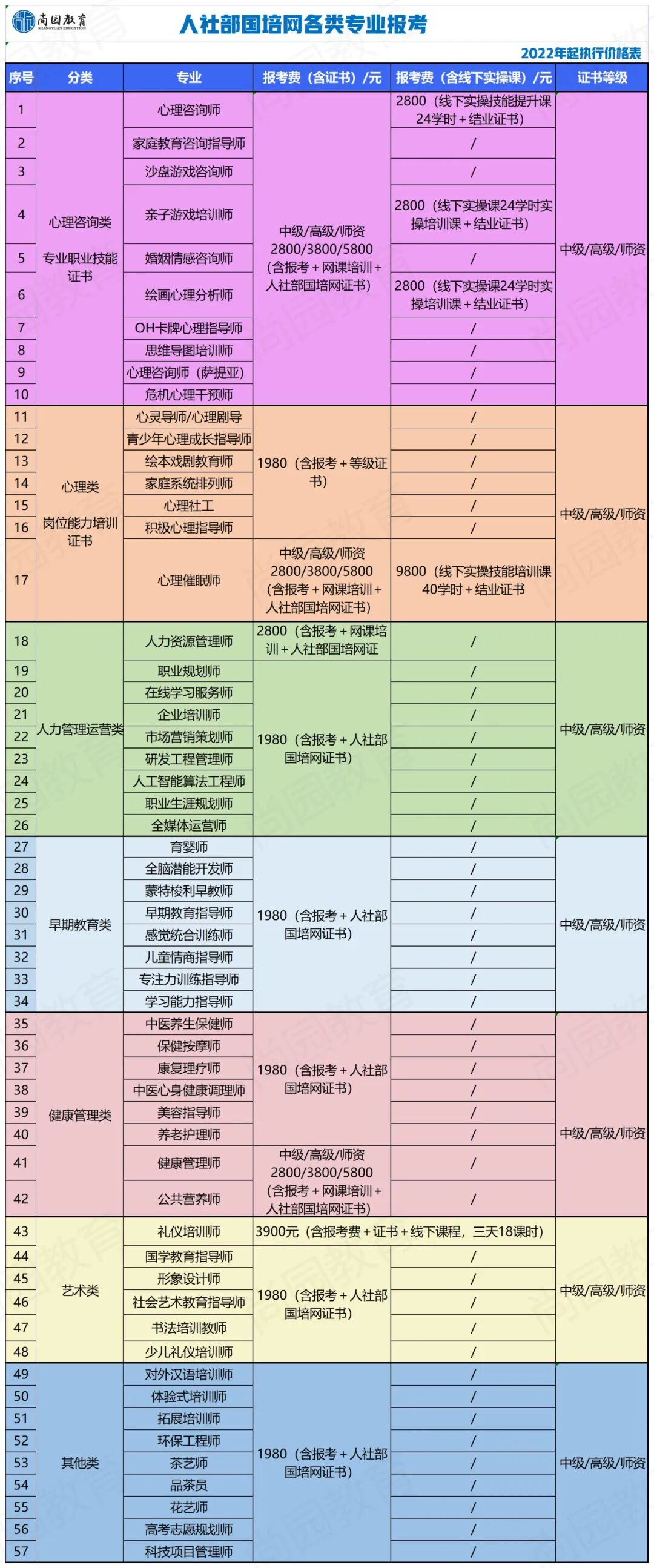 《意见》中提出的“推动中等职业学校与普通高中、高等职业学校与应用型大学课程互选、学分互认”等内容极为值得重视。因为这意味着学生在未来并非只有入读普通高中参加高考这一条路可走。“《意见》不仅打通了职业教育内部的上下产业链,也实现了职业教育与普通高校之间的横向融通。既得到进一步向上的通道,又能够实现与应用型大学的互认,这有望大幅降低社会的焦虑感。”人力资源和社会保障部中国国家人事人才培训网全国青年人才培训项目,对职业技能人才的培养已如火如荼的拉开了国家舞台的大幕。中国国家人事人才培训网http://chinanet.mohrss.gov.cn/(简称:国培网)是由人力资源和社会保障部事业单位人事服务中心主办的国家级平台,从事企事业单位管理人员培训、专业技术人员继续教育、职业技能提升培训等领域的国家级职业培训教育专业机构。每年向社会培养和输送职业技能型人才数以万计,为社会发展做出了重要的支撑和有力的人才队伍建设保障。“国培网”各地考试中心相继成立,贵州尚园教育咨询有限公司是国培网授权“贵州省考试中心”,负责合作课程的招生培训、考试组织等各项工作。尚园教育致力于发展职业技能教育,大力培养技能型人才队伍。在贵州,心理咨询师、绘画心理分析师、家庭教育指导师等不同专业技能实操培训课程的开办,得到了学员们的一致好评,除了自我成长,还能学以致用,促进就业,为社会稳定起到了不可或缺的重要作用。